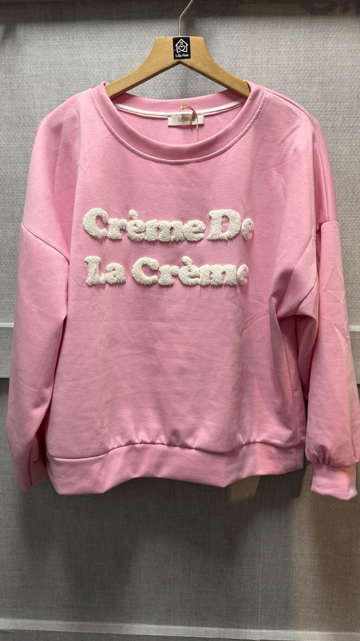 - Broderad text "Creme De La Creme" på bröstet